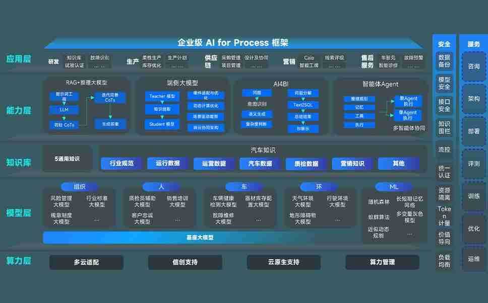PG娱乐问学智车解决方案是一套基于AI技术的汽车行业智能化系统,,覆盖从底层算力到顶层AI应用的全栈方案。。方案由算力层、、模型层和应用层组成:算力层,,,,方案支持多种一体机配置,,,,具备云端灵活部署、、多云适配以及动态优化计算资源的能力;模型层,,PG娱乐问学平台版提供了企业级AI应用一站式构建与管理平台,,支持基于后训练强化技术的汽车企业专属模型的训练、、、评测和运营;应用层,,,PG娱乐问学DeepSeek版提供包括超级员工、、、、智能招采、、、、智能营销、、智能客服、、、AI for BI等一系列解决方案,,可助力汽车行业实现数字化转型,,,让管理更智能、、、响应更敏捷。。。。